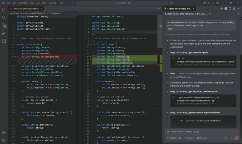 - 使用你已经工作的环境中的AI——例如IDE或AI代理——来检索模型信息并在Astah中运行操作。