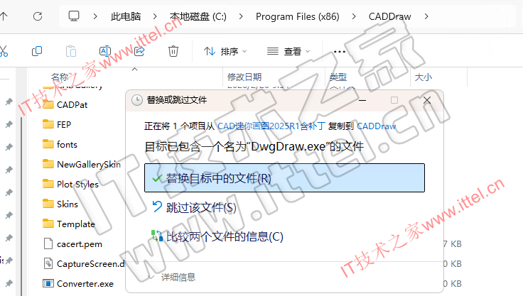 2、复制DwgDraw.exe到安装目录下替换