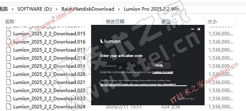 2、管理员身份运行【Lumion_2025_2_2_Download】,code 输入:H6P5ZV3W,点击Verify