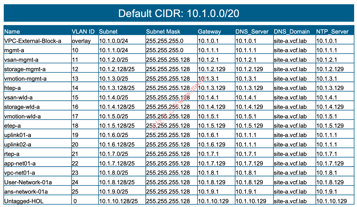 10.1.0.0/20构建完整网络,包括 DNS 映射与 BGP 路由。用户可通过输入参数指定自定义 CIDR(/20),系统将自动在该网段中部署。同时可自定义 VLAN 与 DNS 域(默认域名为vcf.lab)。 - 内置预检查:每次运行新部署时,Holodeck 9.0 都会执行一系列预检查,确认所需二进制文件是否齐全、目标主机是否可达等。