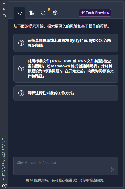 • Autodesk Assistant 现在提供 AI 增强的聊天功能和提示驱动的工作流。