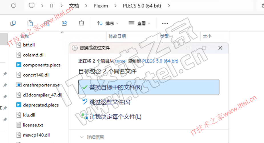 2、打开tercel,复制 PLECS.exe和Qt5CorePlexim.dll 到安装目录下替换