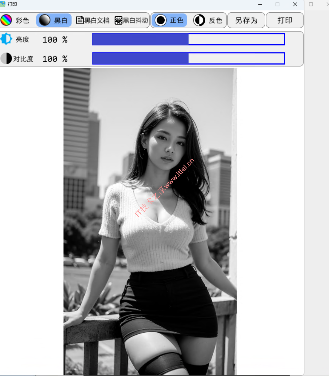 进入打印功能可以简单调整图像的 对比度亮度是否反色 等等,然后再决定 另存为 其他图像文件或 继续打印
