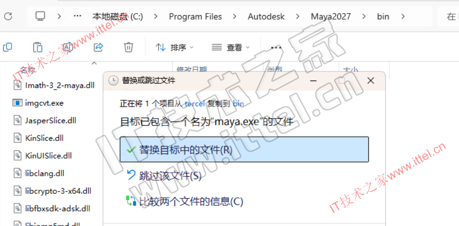 3、安装完成后,复制tercel下的maya.exe到安装目录下