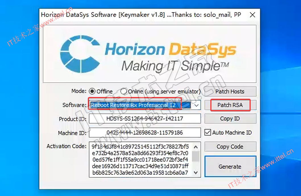 - 打开tercel,运行注册机Horizon.DataSys.Keymaker.1.8.exe,复制机器码到注册机,点击generate生成注册码,复制产品ID到激活窗口,复制注册码到激活窗口,点击激活,然后重启计算机
