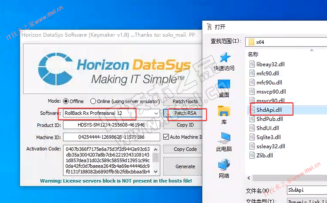 1、打开tercel文件夹,运行注册机Horizon.DataSys.Keymaker.1.8.exe,点击“Patch RSA”按钮,依次选择安装包里的4个“ShdApi.dll”文件