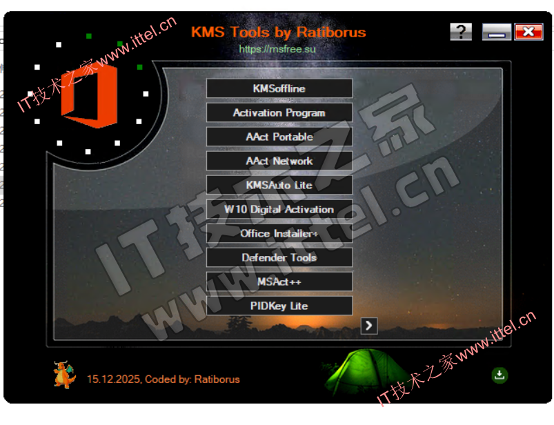 Ratiborus KMS Tools是国外的一款激活工具集成包,可以说是万能的Windows 激活工具,通用激活Windows 11/10系统、Windows 8/8.1系统、Windows 7系统,Office 2010激活,Office 2013激活,Office 2016激活,Office 2019激活,Office 2021激活,KMS Tools激活工具由老外@Ratiborus,MSFree Inc.编写KMSTools Portable ,原生单执行文件,可选多种方式装置KMS效劳以及创立方案自动续期!